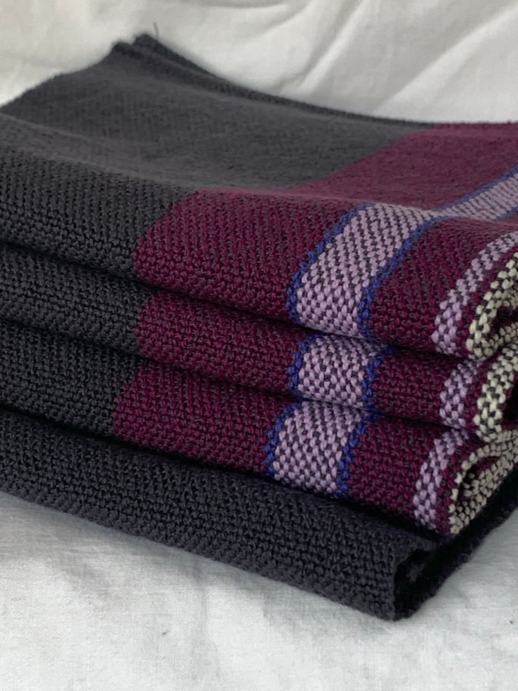 These beautiful, bespoke towels are made with an array of applications in mind; towels work great in the kitchen, for face and hands, for travel. Each batch of towels has a unique color palette.