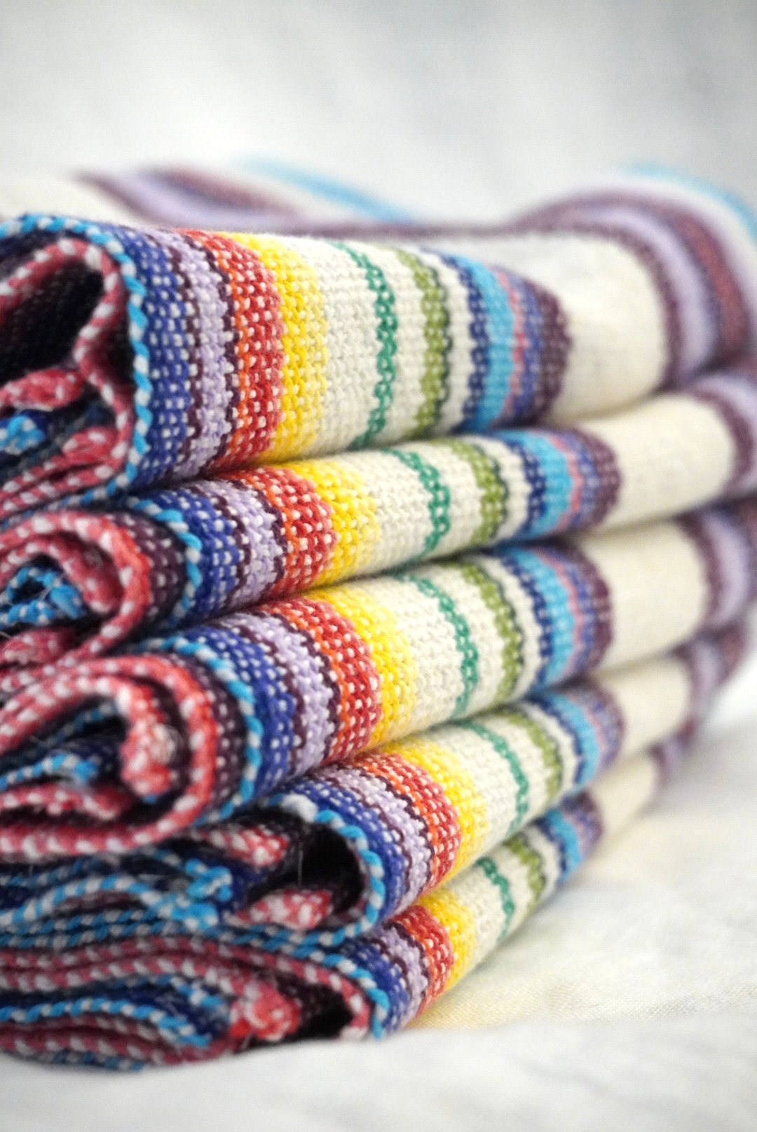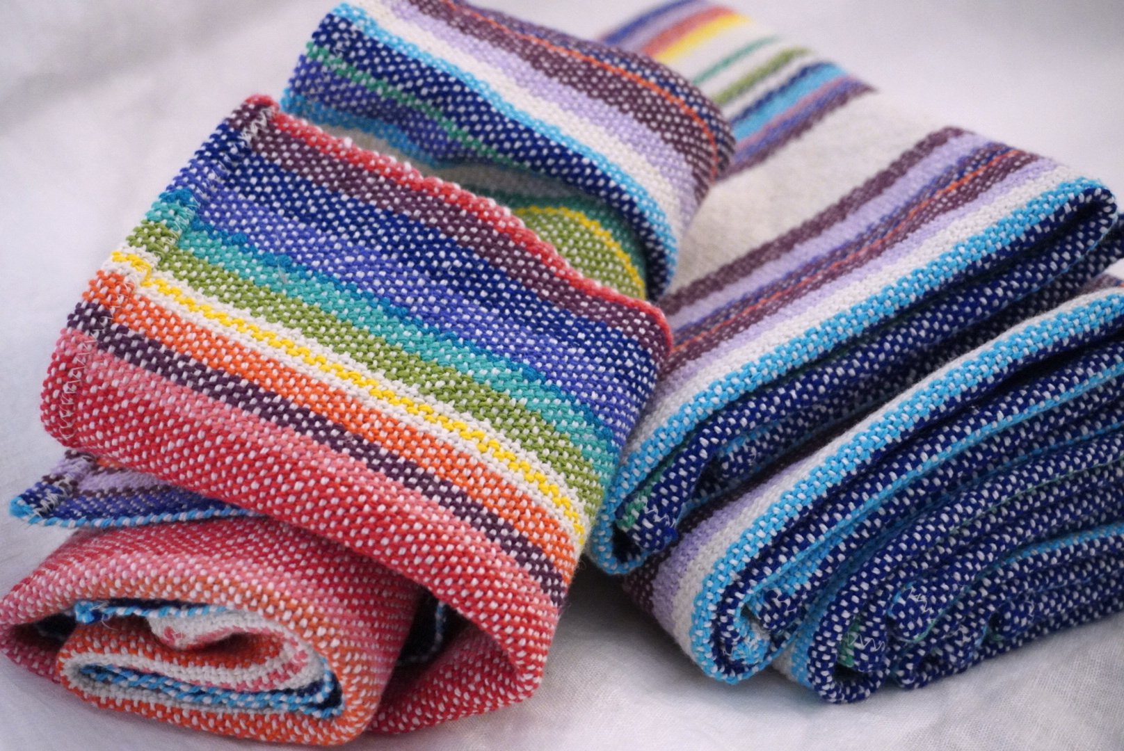 Towels are woven in plain weave with 6/2 cotton. Cloth will soften and gain absorbency with repeated use and washing. These towels will brighten any space and are truly wonderful to use.