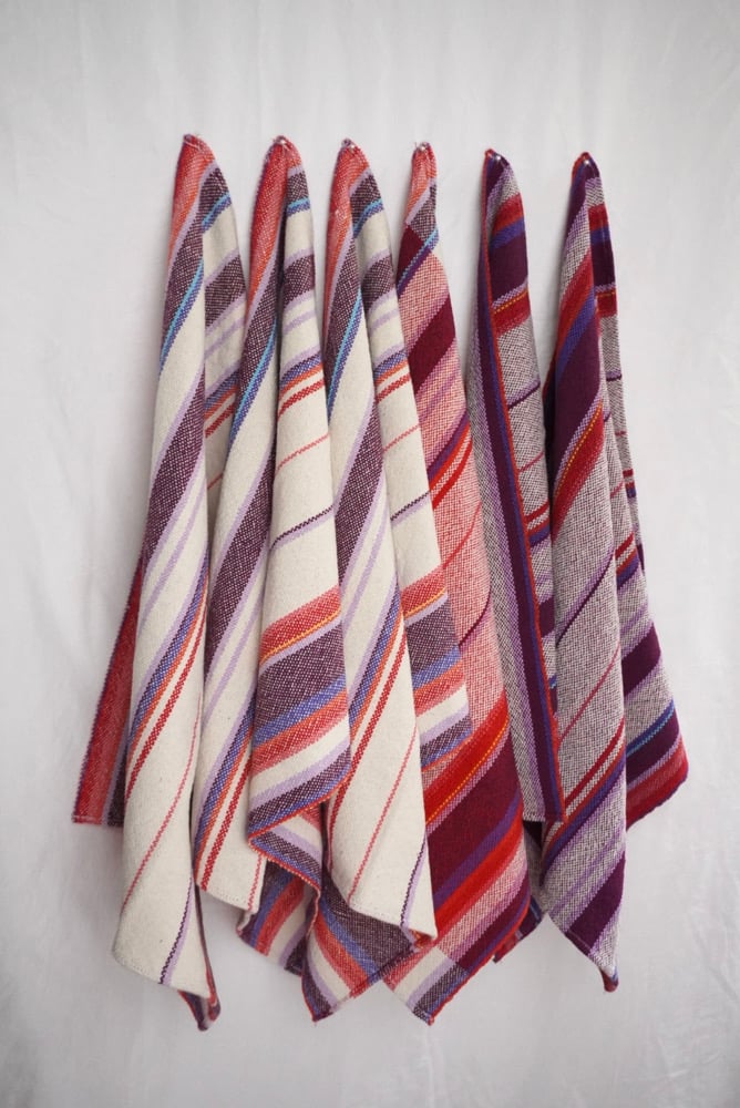 These beautiful, bespoke towels are made with an array of applications in mind; towels work great in the kitchen, for face and hands, for travel. Each batch of towels has a unique color palette.